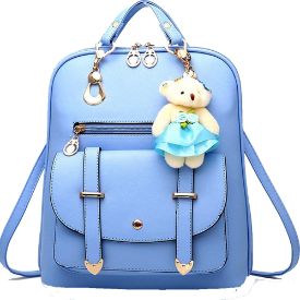 Alice Sky Blue PU Leather Travel Rucksack Women Shoulder Backpack